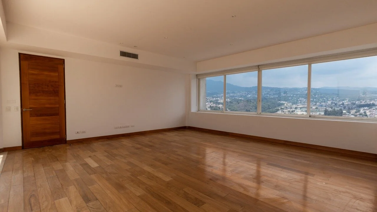 One of the most beautiful duplex penthouse apartments in Cumbres Santa Fe. On the 25th floor with stunning views of Mexico City, this apartment features 4 bedrooms, 4.5 baths, Private roof garden, balconies, family room, library/game room, kitchen with substantial island, 5 parking spots and amazing amenities such as; a swimming pool, spa, common area, children’s play area, tenis court, paddle court and more. Close to many shopping centers, great schools and with high end security 24/7. This apartment is luxury living at its finest in CDMX.