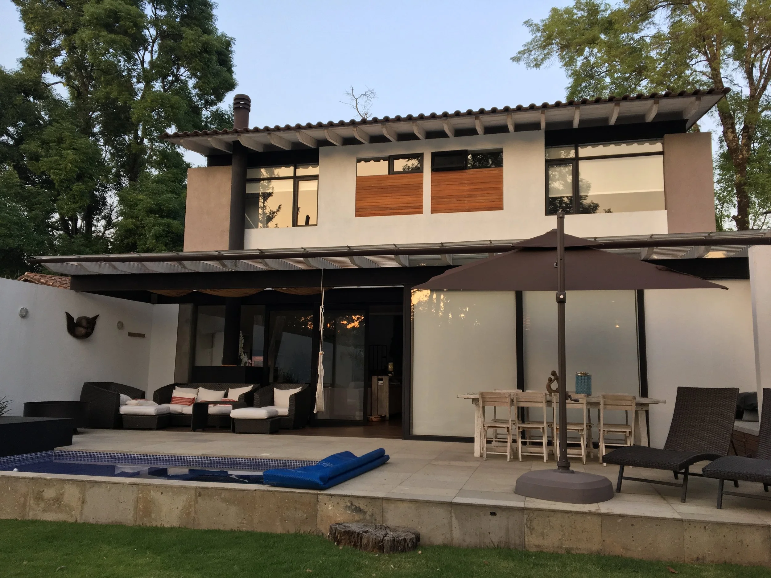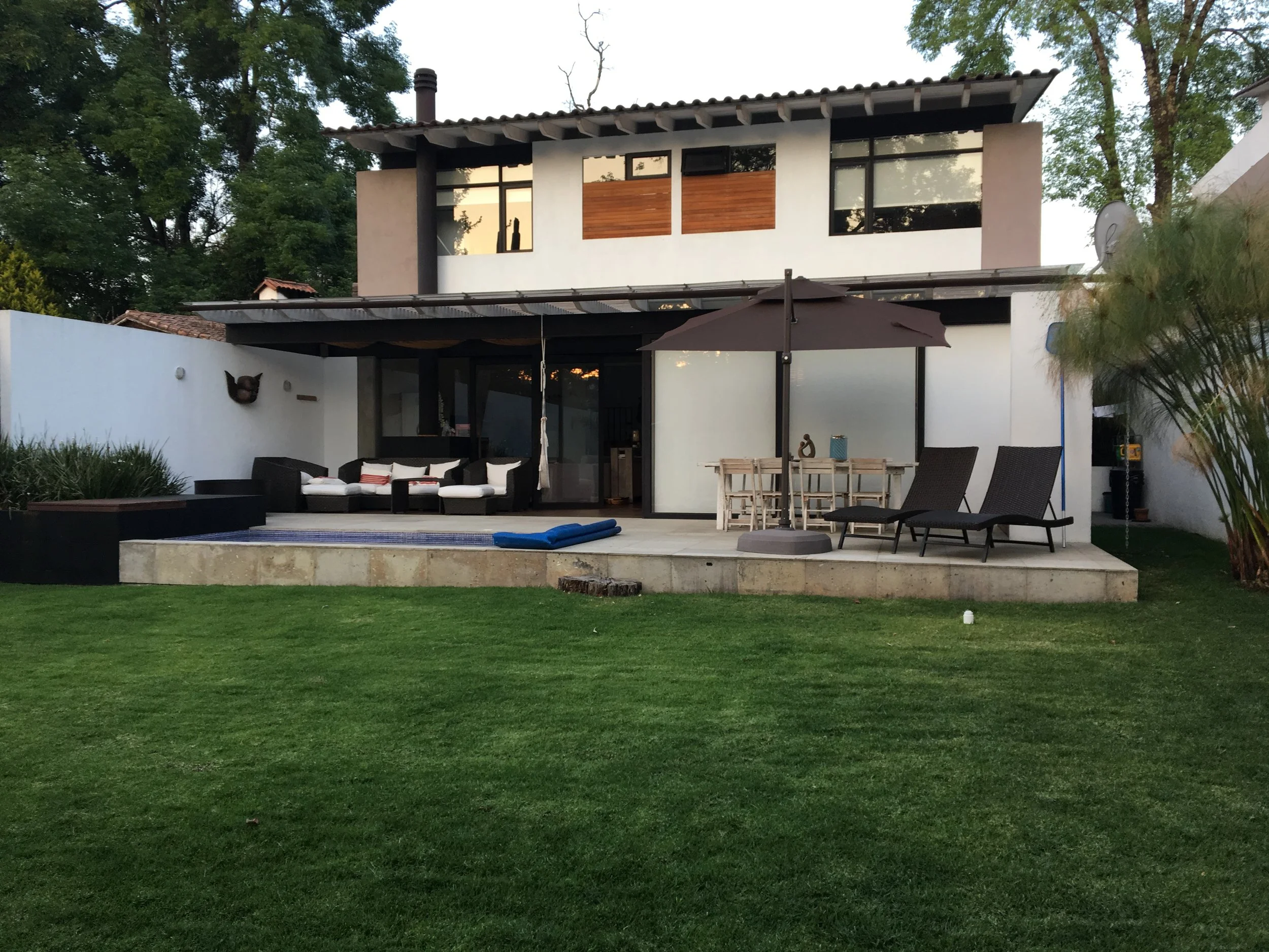 One block from the center of Avandaro, this modern smart house is perfect for weekends with friends and family. Only 4 years old, in perfect condition, the house offers a living/dining space that opens completely to the garden with in ground jacuzzi. 3 bedrooms upstairs, each with bathroom and closets. Stair with skylight, maids room with bathroom, automatic 2 car garage plus space for Razr. Extra space for 3rd car outside, alarm system, water feature, in ground lighting, working fireplace, covered and uncovered terrace, pergola, beamed ceilings, bodegas, water cistern and septic system. Warm in the winter and cool in the summer, this house was designed by an industrial designer who thought of every detail. One of the few properties in Avandaro without humidity. A must see, ready to SELL!